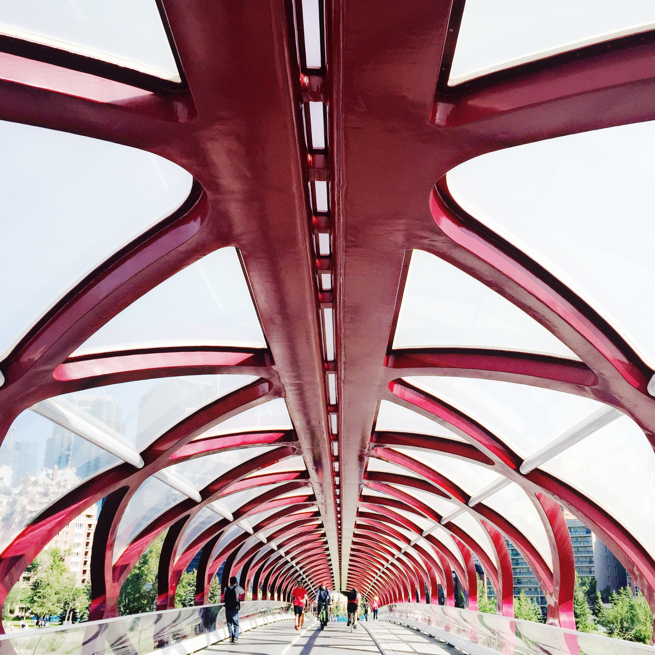 Popular Spanish architect Santiago Calatrava, the author of the Palace of Arts Reina Sofia in Valencia, raised in Calgary (Canada) unusual red bridge, almost immediately called “The Bridge of Peace.”