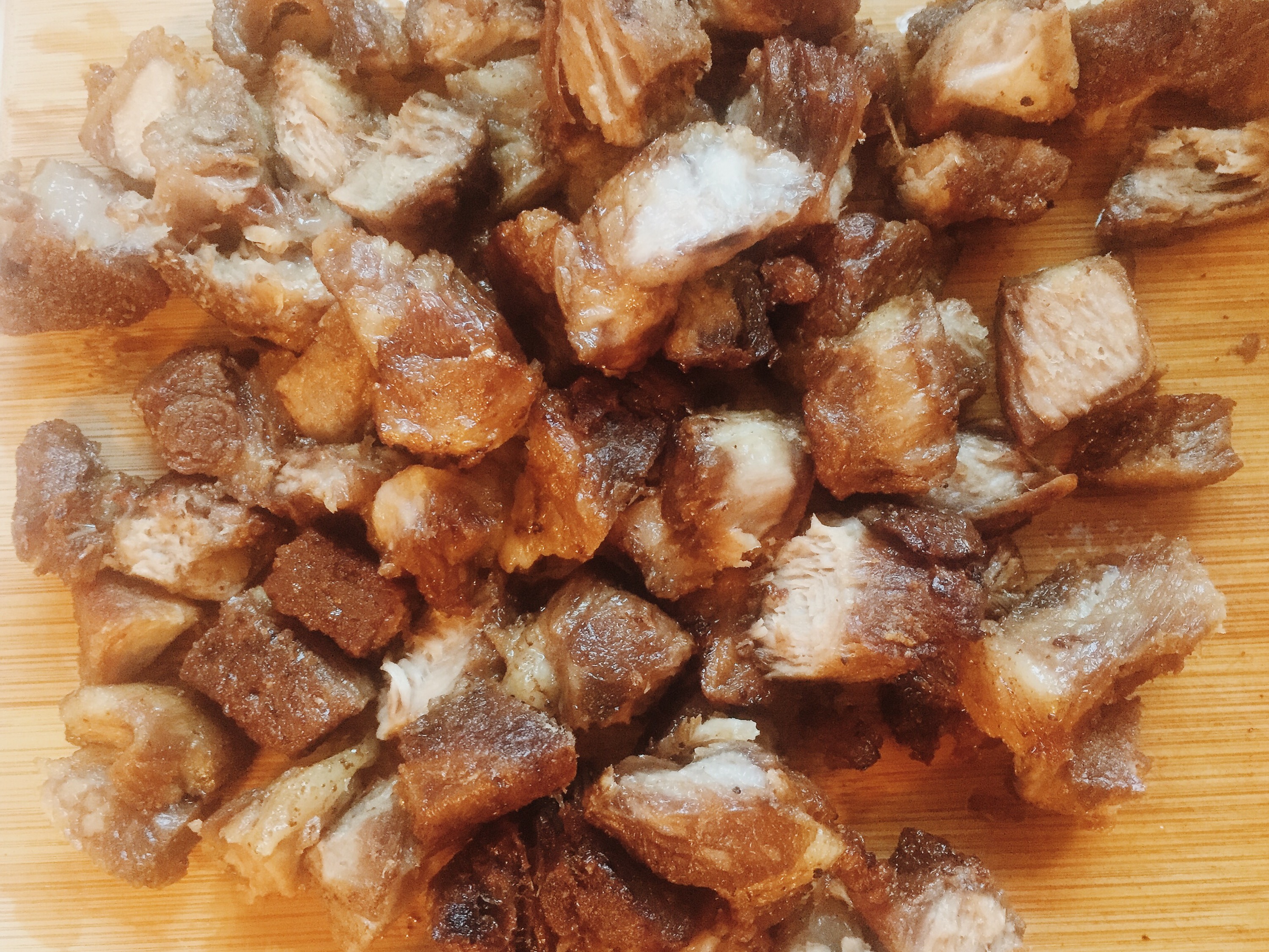 3. Next thing is chop the pork. Fry it. (Instead of frying, you could also cook it by grilling. I like the grilling more than frying because it brings out the oil inside the pork.)
