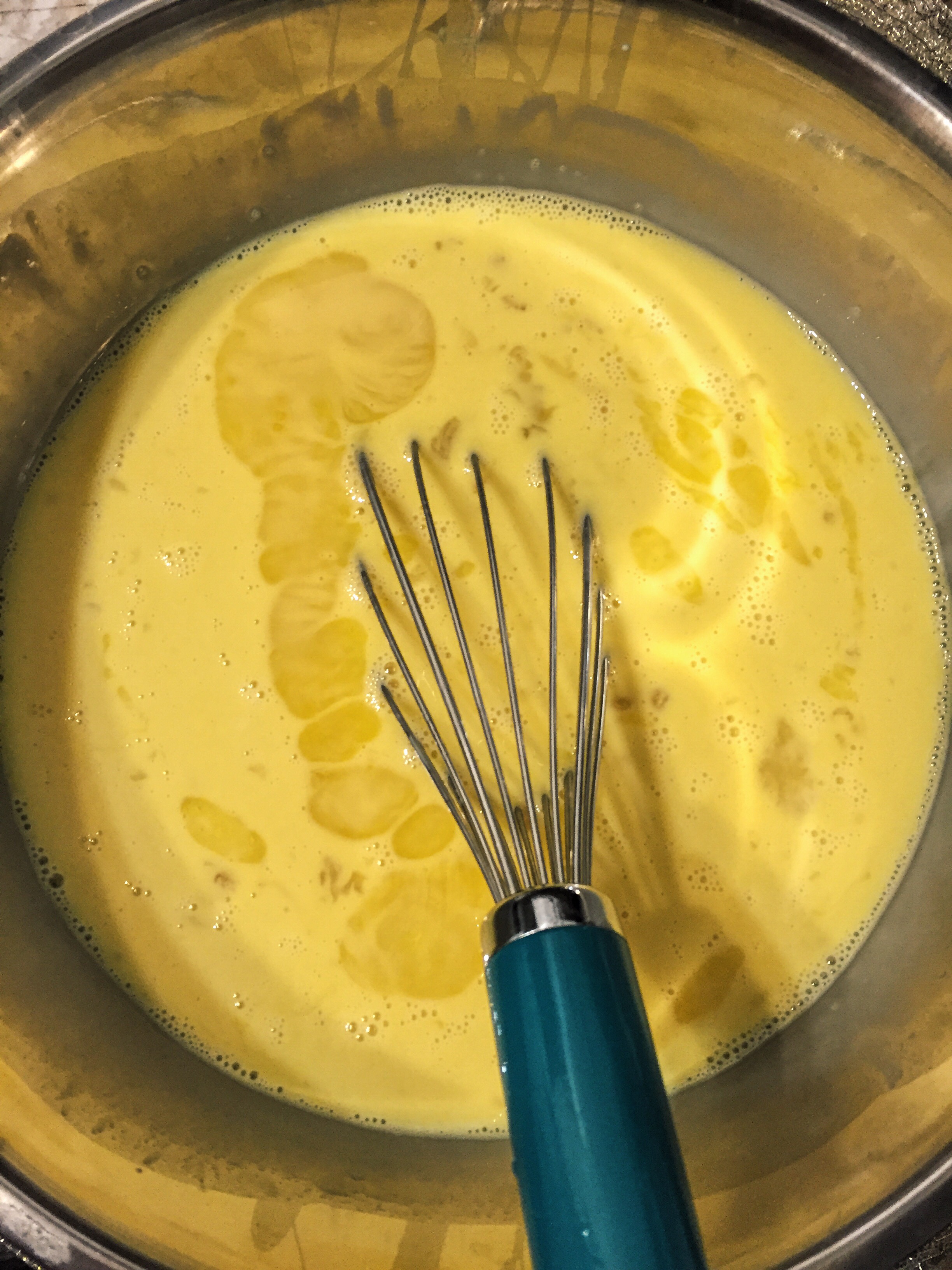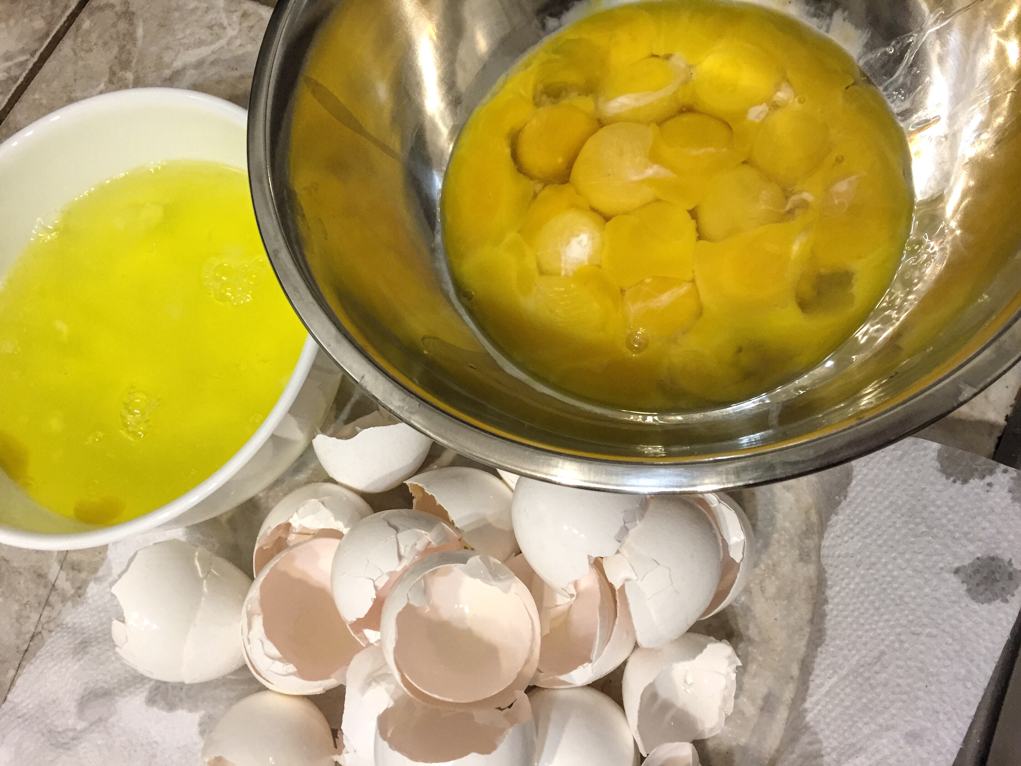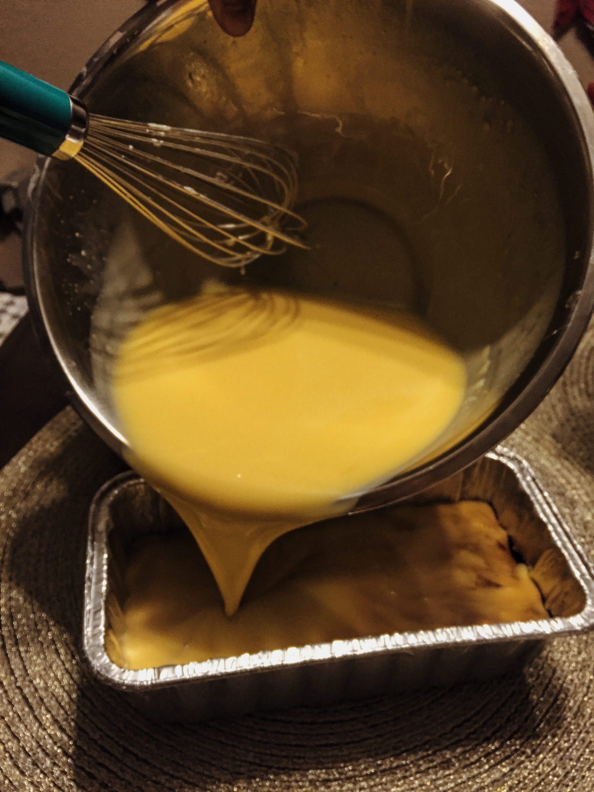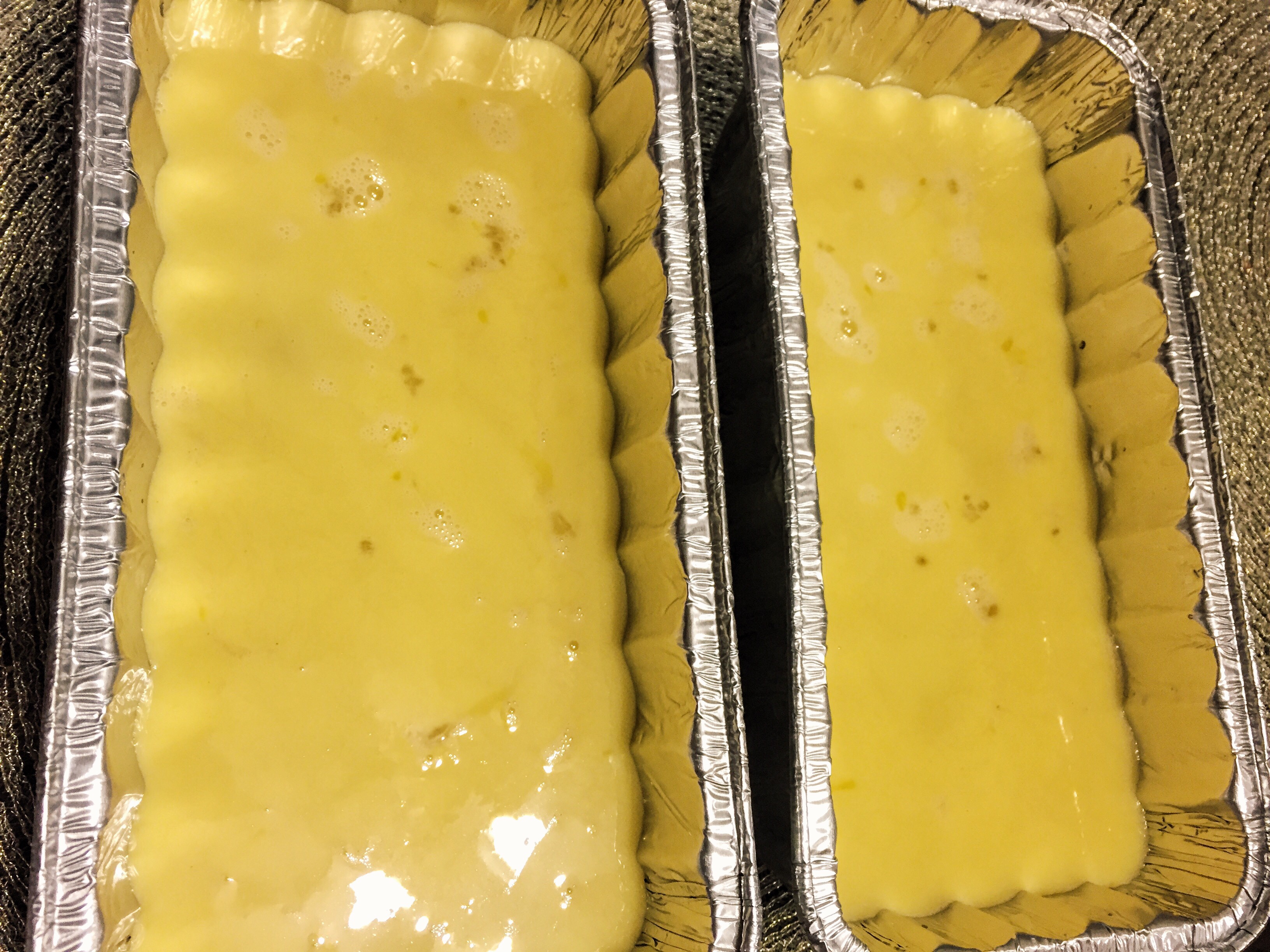 - Add slowly the mixture of yolks into the loaf pan make sure they won’t mix.