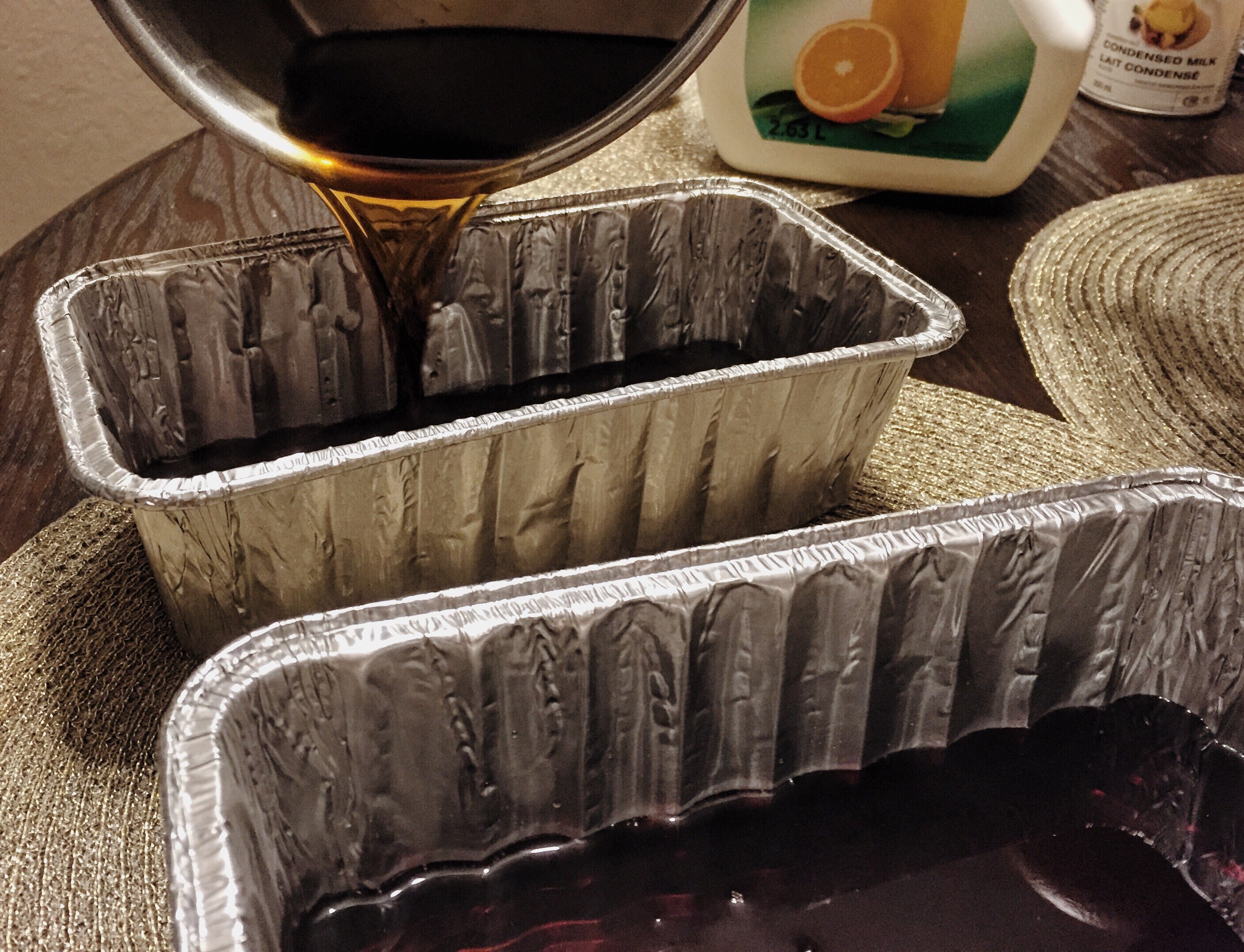 - Pour the caramelized brown sugar onto the loaf pan. Make sure it’s not too much nor too little. Recommended height is about 1 and 1/4 inch in a standard loaf pan or depends on loaf pan’s size.