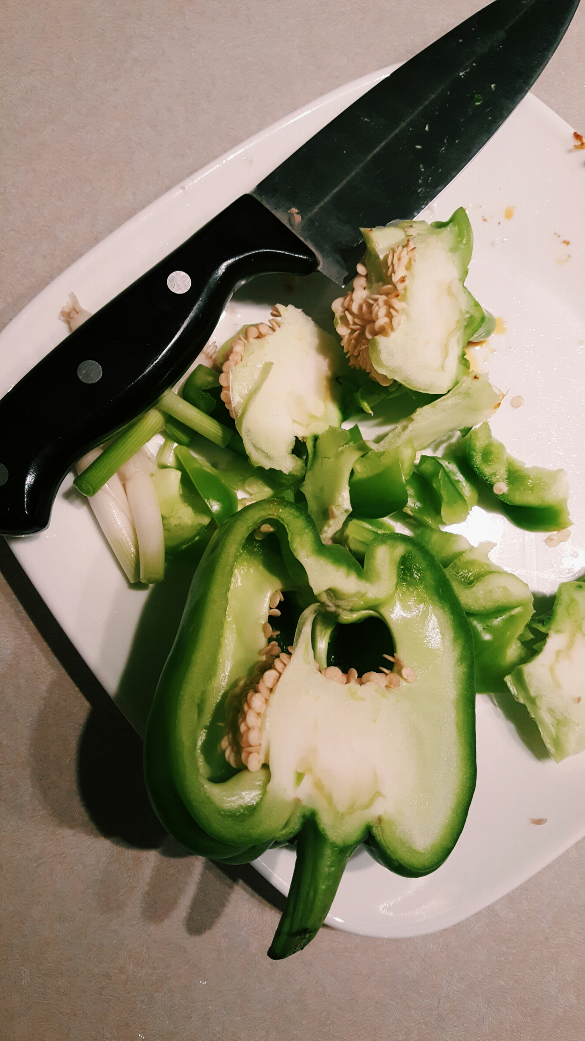 3) Chop the spring onions and bell pepper.