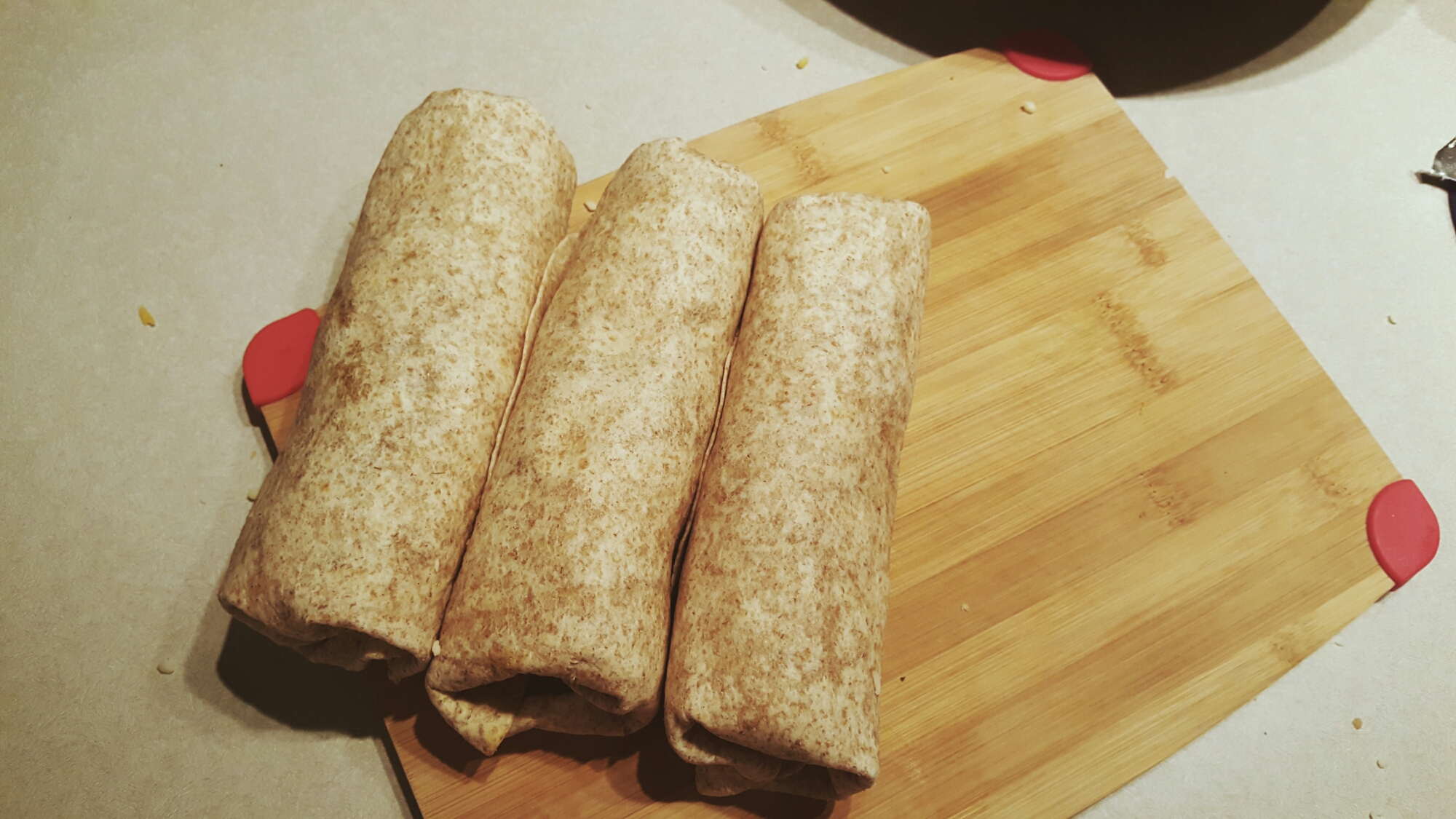8) Wrap them all up in a wrapper. (Does not matter if whole wheat or not.)
