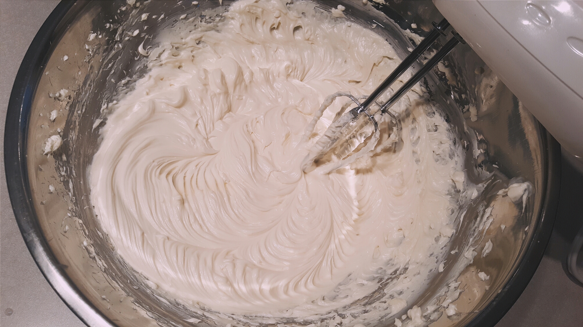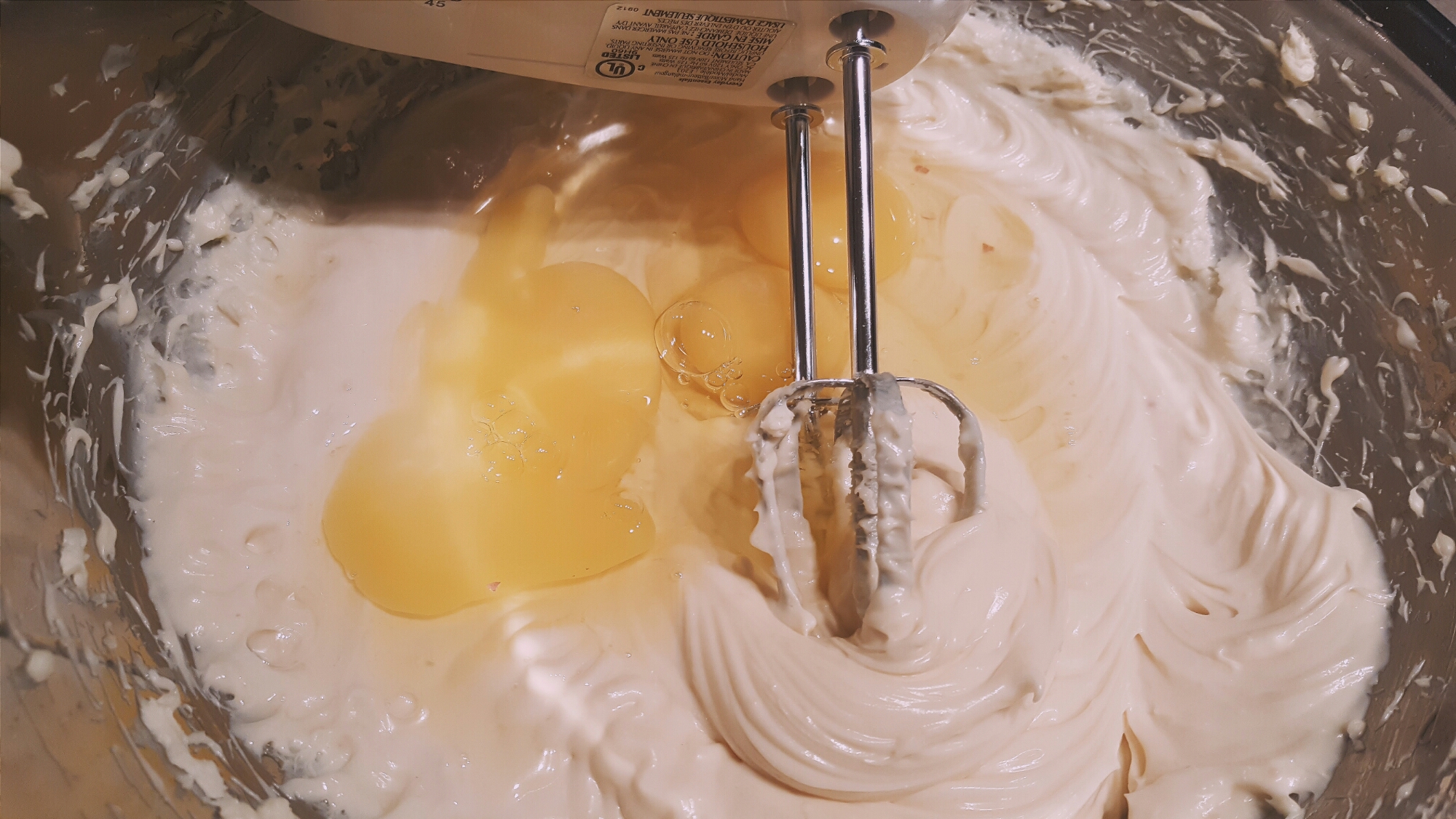 5. While waiting, beat the cream cheese until soft then mix in the sugar.