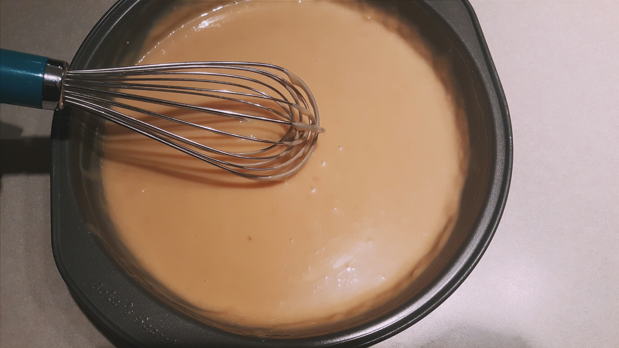 6. After an hour, get the  caramelized condensed milk, whisk it and get 1/2 cup of it. Leave the rest and put it in the fridge for latter use.