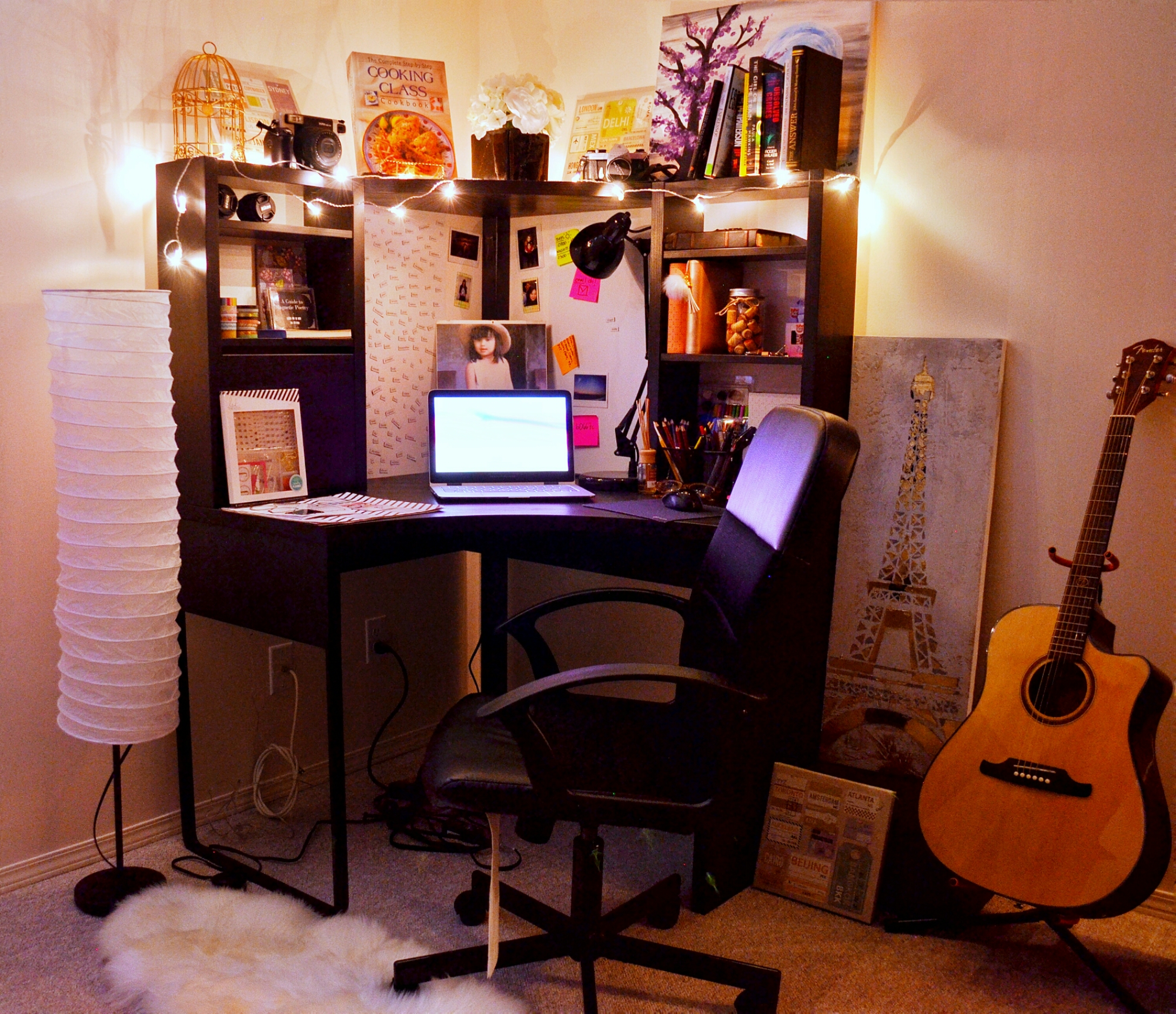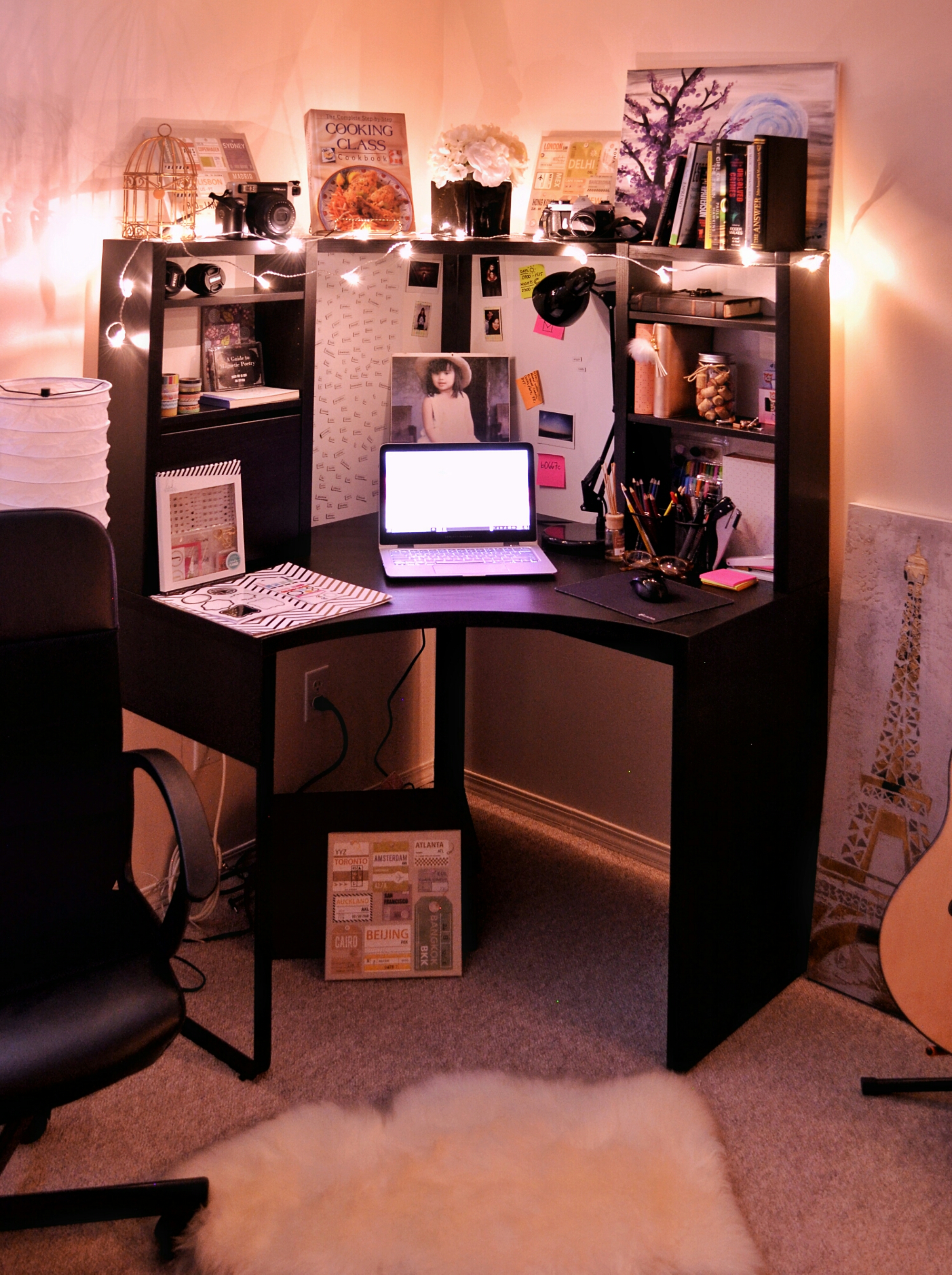Almost all of the stuff 0n my desk is for my planner/journal. I spend my day a lot in this space so I try to keep them organized. I am a visual person and that’s another reason for me to love this desk because it comes with its pre-installed white board. I also use it in posting my favorite printed pictures.