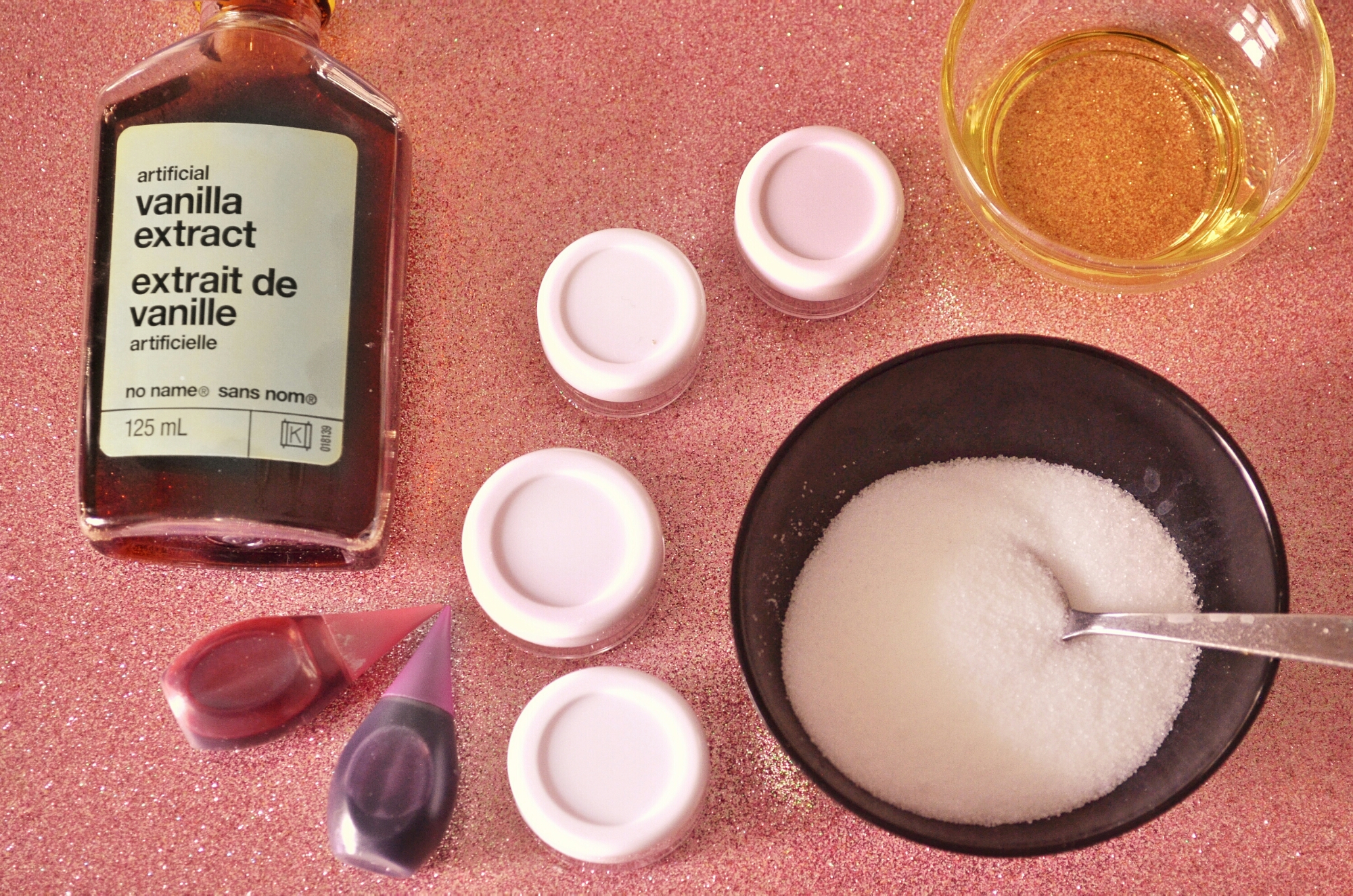 The ratio for all the ingredients (except for the food coloring) is 1:1:1. This tutorial is for vanilla flavored lip scrub. You can also try this with different flavors. Just replace the vanilla extract with your desired flavor. You can also have variety of colors. In this tutorial, I used pink.