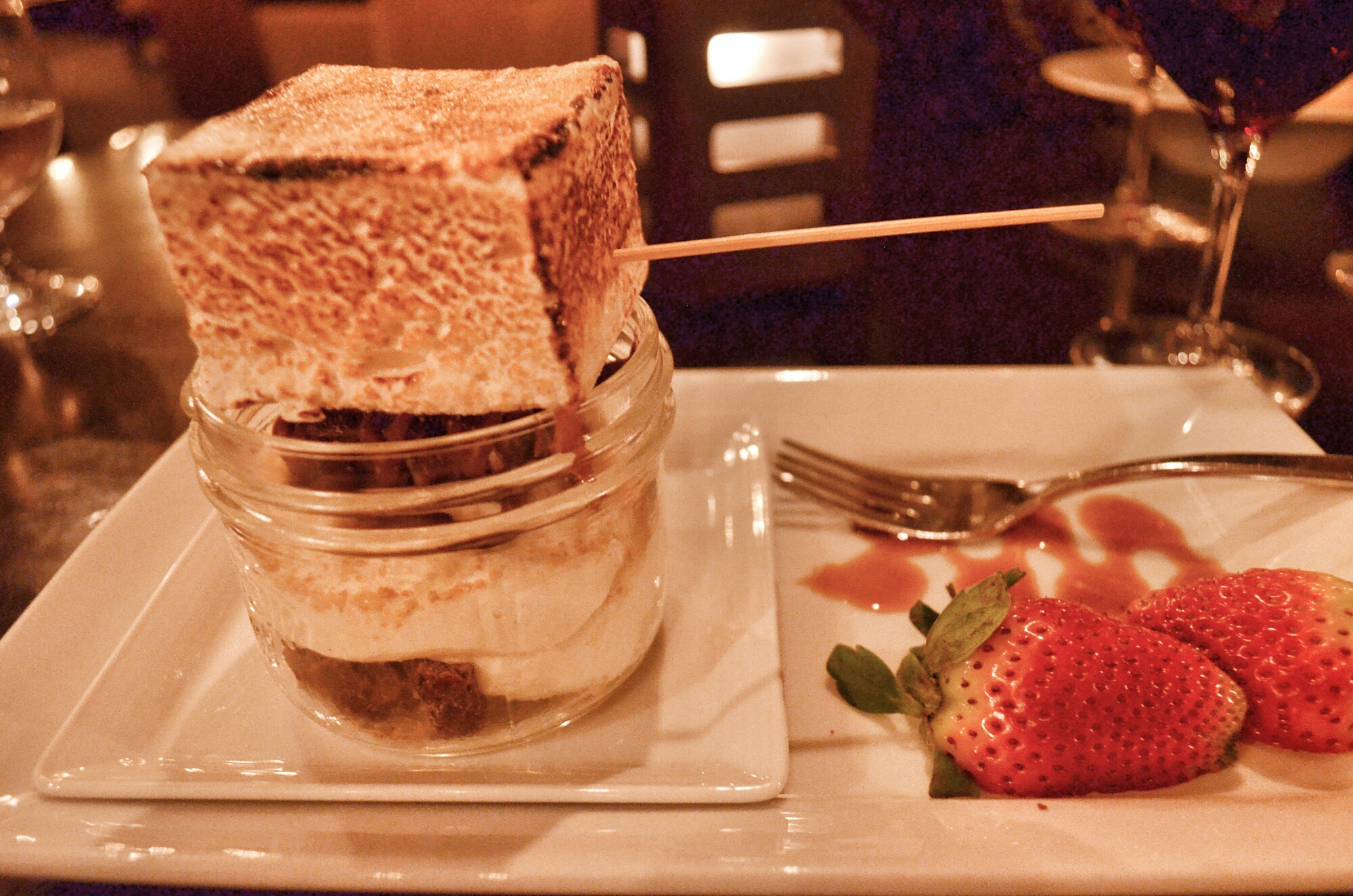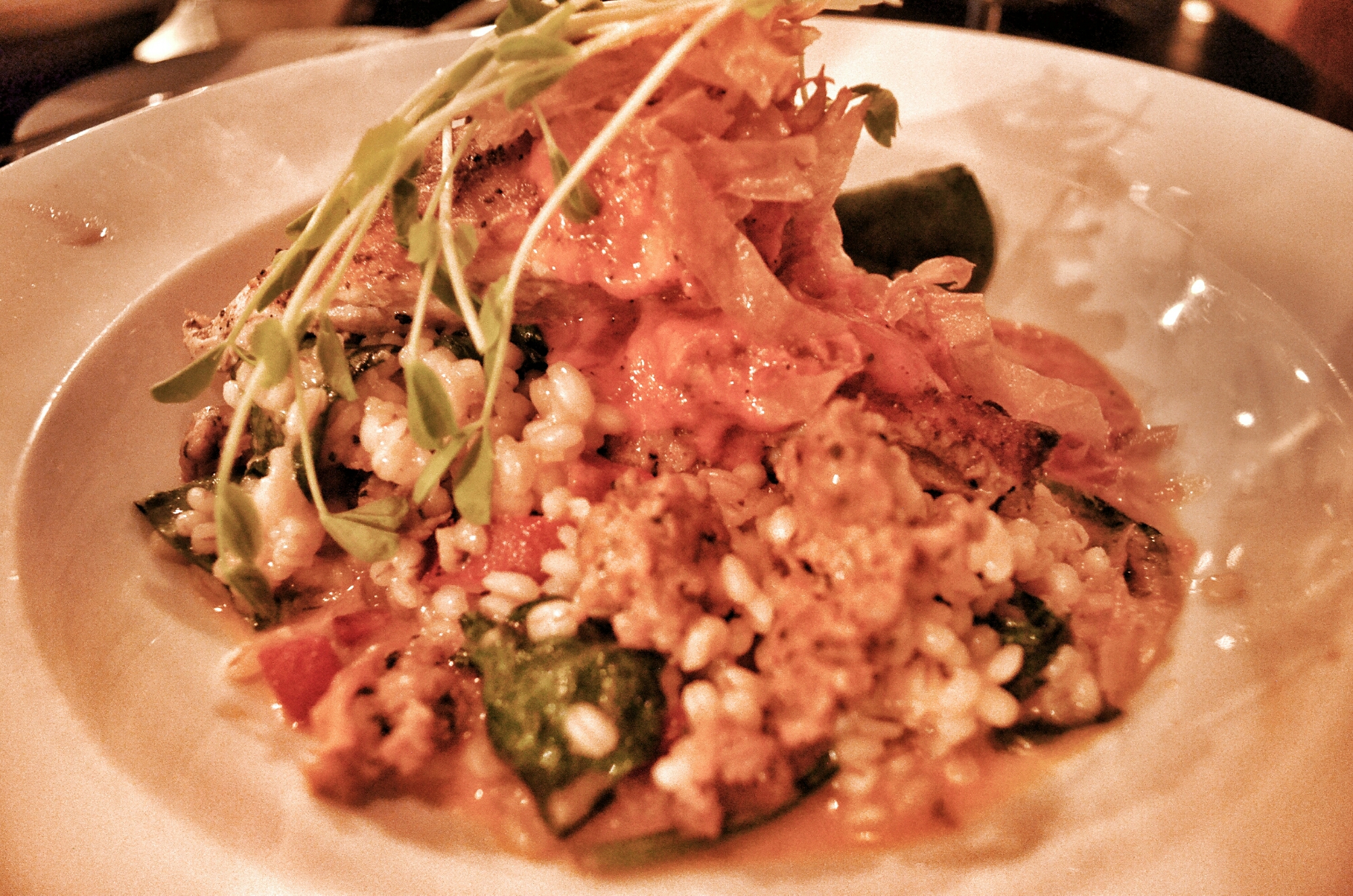 For our main entrée, we had roasted chicken barley risottowhich is made with Spolumbo’s chorizo sausage, roasted peppers & spinach. The chicken was well done and you can see it smoking as they serve it to you!